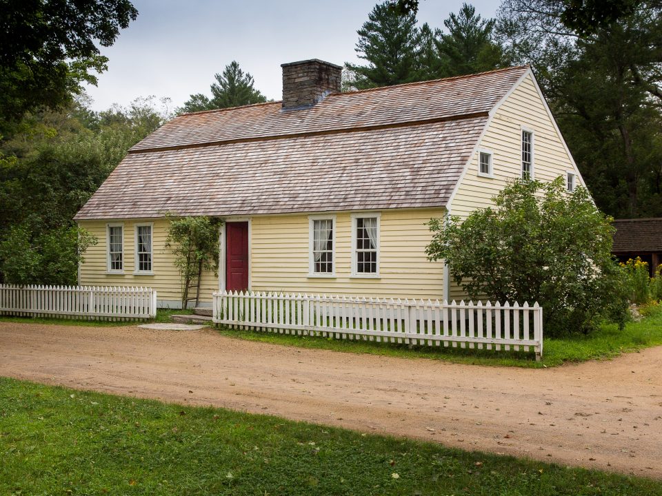 This symmetrical Cape-style home, which has a gambrel roof and a kitchen ell off the back of the building, had several additions through about 1820. With its white picket fence, rose trellis at the door, and a colorful flower garden designed for the children in the side yard, the Fitch House suggests the prosperity of a center village tradesman. The garden’s circular layout, bright blossoms, and rustic arbor of birch saplings is based on one of New England’s earliest books of horticulture advice, “The Young Florist”, written by Joseph Breck in Boston in 1833.