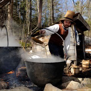 See the entire sugar-making process, from tapping the trees to "sugaring off," and learn why maple sugar was more commonly used than maple syrup in early New England. Costumed historians will also cook period foods made with maple products and the tinner and cooper will make maple-related items.